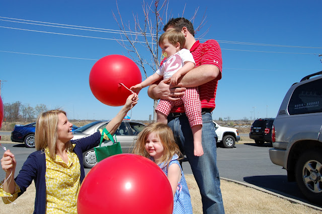 Before we 'bounced' back into the car to return home, we let the big balloons go off into the sky. Mattie tried to capture a family picture for me, but this again proved hard to do.